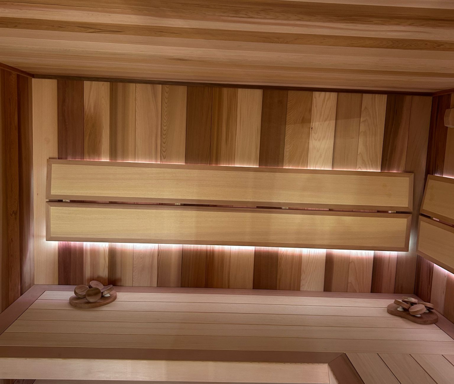 Základ celého interiéru tvoria široké palubovky z kanadského cédra. Drevo s výraznou kresbou a prirodzene teplým farebným tónom tu neplní len estetickú rolu. Céder je známy svojou stabilitou, príjemným povrchom a charakteristickou vôňou, ktorá sa v teple jemne uvoľňuje a stáva sa neoddeliteľnou súčasťou saunovania. Práve tento nenápadný aromatický detail dodáva hĺbku zážitku celému rituálu, ktorú nemožno nahradiť žiadnym technickým prvkom.